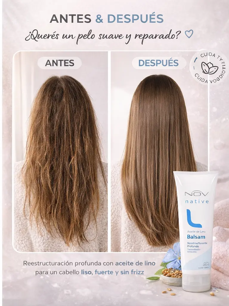 🌿 El aceite de lino crea una película protectora que ayuda a mantener la hidratación y proteger tu pelo día a día.